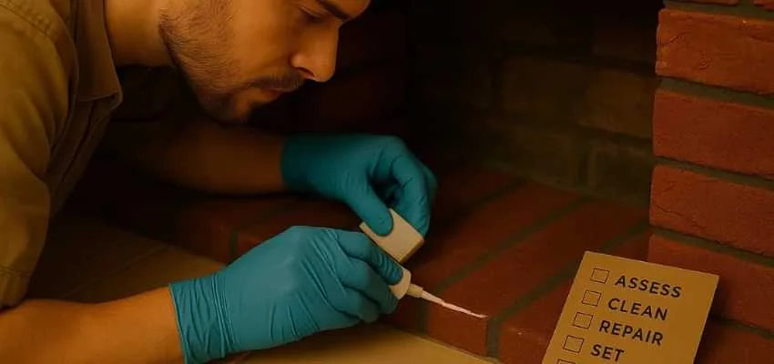 Tiny cracks often start at the firebox opening or along the hearth edge where temperature swings are strongest. In homes across Meadowglen, Georgetown, soot and heat slip through those hairlines, softening old adhesives and staining the substrate. What looks like a cosmetic issue can turn into loose corners and chipped edges if it is not addressed.